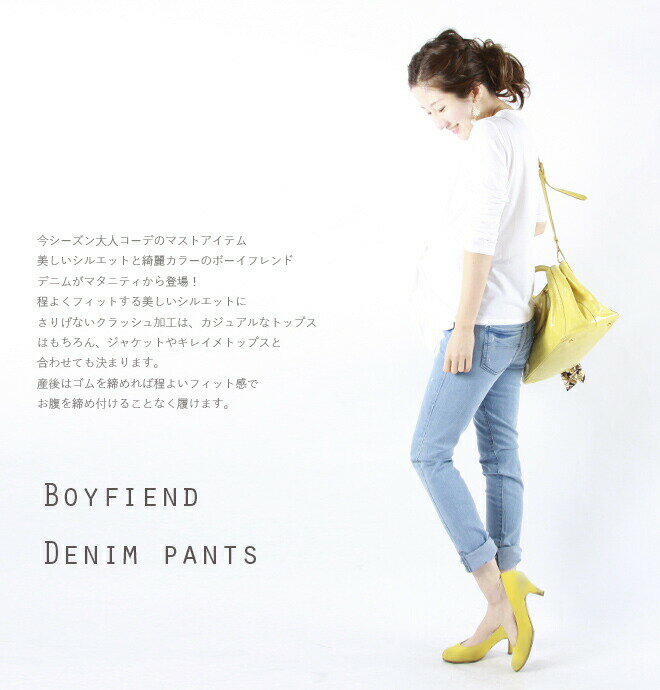 ≪クーポン配布中≫ 【まとめ割引】<マタニティ・パンツ>スーパーストレッチ・ボーイフレンドデニムパンツ☆マタニティ マタニティウェア デニム マタニティジーンズ 妊婦パンツ ボーイフレンドデニム 妊婦ズボン 妊婦服