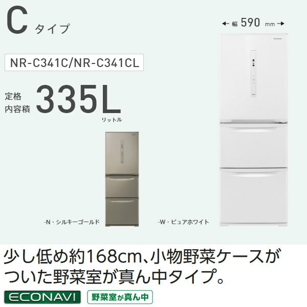 [予約 約1〜2週間以降]【キャッシュレス5%還元】【設置込/左開き】パナソニック 3ドア ノンフロン冷凍冷蔵庫 335L 幅59cm NR-C341CL-N【/srm】【KK9N0D18P】