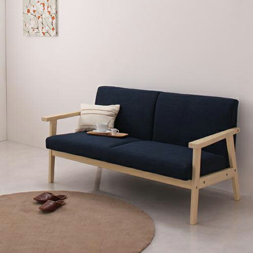 ソファ ソファー カウチソファ ネイビー 幅:50cm〜59cm 奥行き:50cm〜59cm 高さ:30cm〜39cm カントリー クラシック フレンチ ベーシック ミッドセンチュリー モダン レトロ ロマンチック 北欧 無地 要組立品 布地 木 中国 2人掛け カウチ 北欧風 紺 ネイビー 白 ホワイト