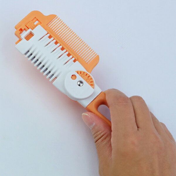 髪の毛を梳かすも切るもこれ1本でOK左右クシ目の違う普通刃とスキ刃のツーウェイタイプのヘアカッターです。