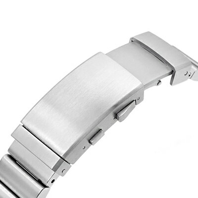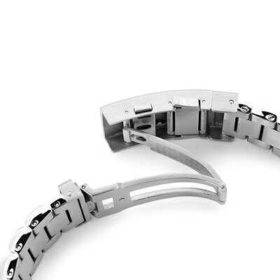 メーカー名TAIKONAUT(タイコノート) ブランド名MiLTAT マテリアルSUS316L ステンレススチール カラー&仕様ブラッシュド(艶消し)シルバー / プッシュボタン式ラチェットバックル ベルトの幅時計側22mm / 尾錠側18mm ベルトの長さ185mm(調整後最小125mm)/ 調整コマ(スクリューピン)3+3=6個 ベルトの厚さ約4.5mm(コマ部) ベルトの重さ約120g 直径2.5mmのバネ棒が付属します。